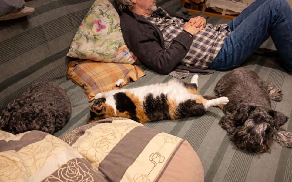 Vstávali jsme sice brzy, ale o to krásnější bylo to po probuzení – plná postel vrnění, mazlení a drbání kožíšků…“