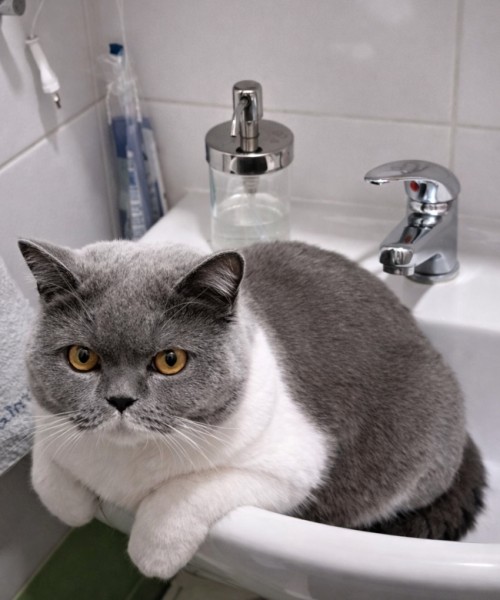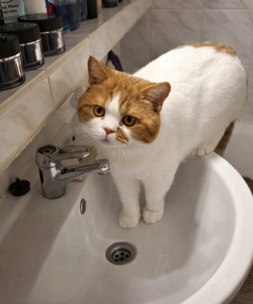 A kde jinde než v umyvadle! Kato k této povinnosti přistupuje se svým typickým klidem profesionála – žádná panika,
