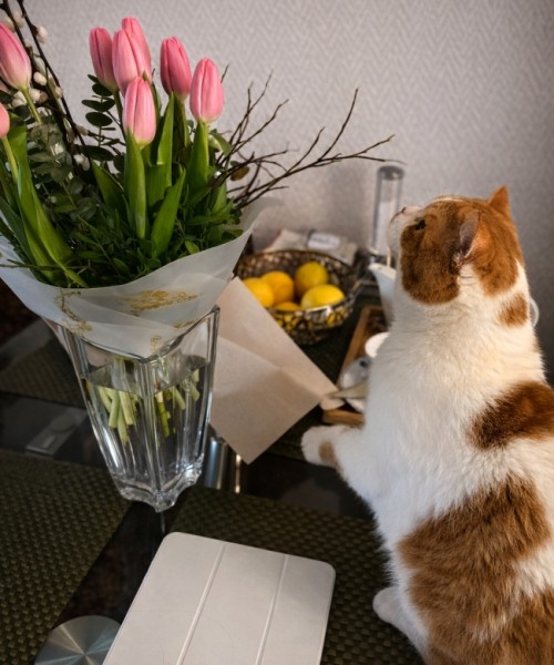Zatímco jiní nosí kytice, on je s maximálním nasazením testuje – list po listu, stonek po stonku.