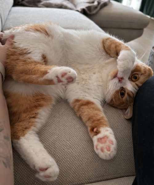 Tlapky uvolněné, bříško spokojené, výraz absolutního naplnění života.