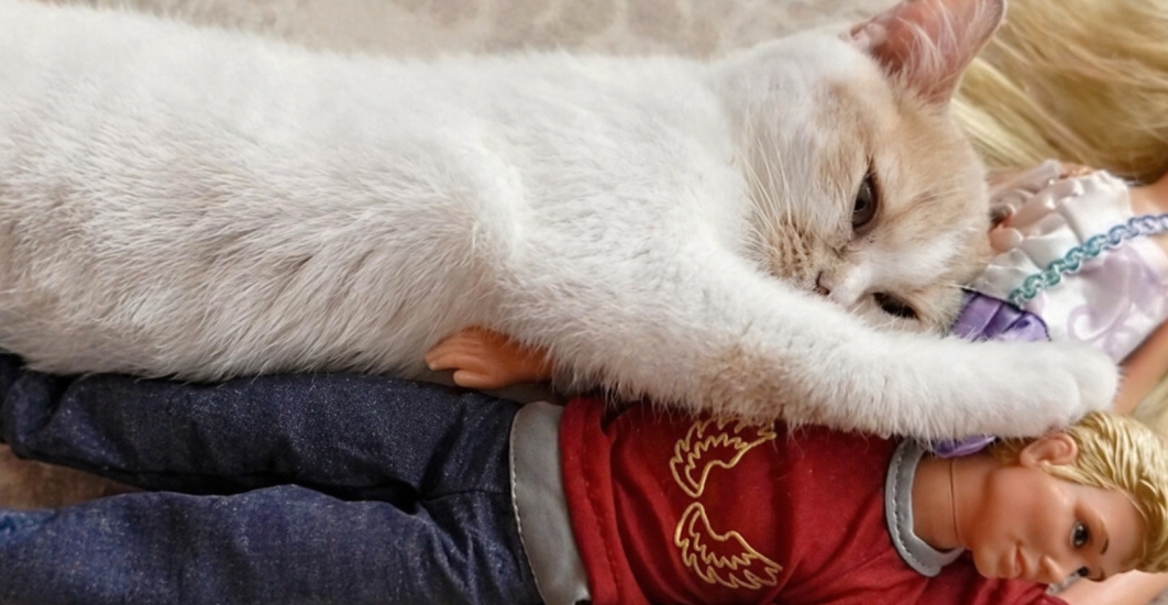 podle paničky je velký mazlík a kde je panička, tam je kočička.Neustále jen s ní............