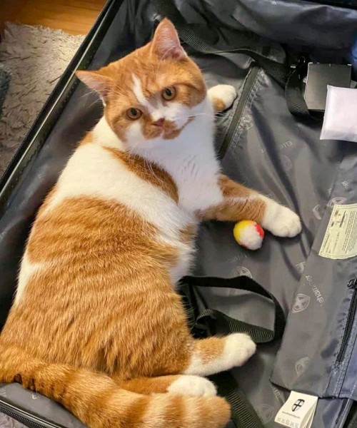 „Ten kufr je můj! Já jsem si ho obsadil první – a nikam se bez mě neodjíždí. Maximálně si zabalím pamlsky!“